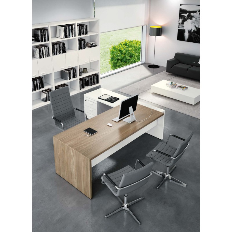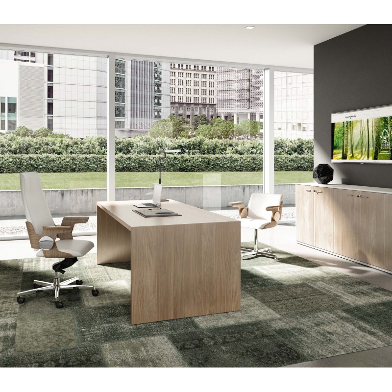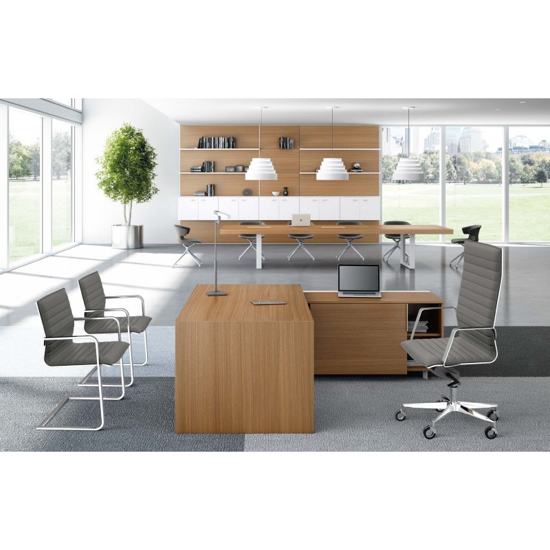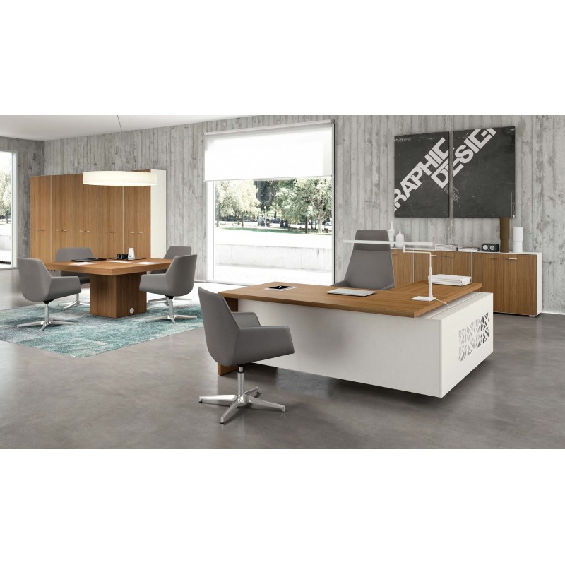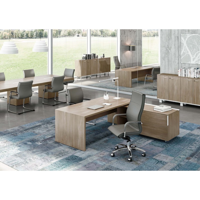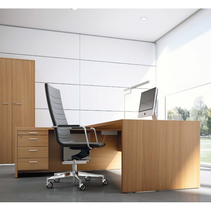 Manažerský pracovní stůl s pravým rohem a skříňkou T45